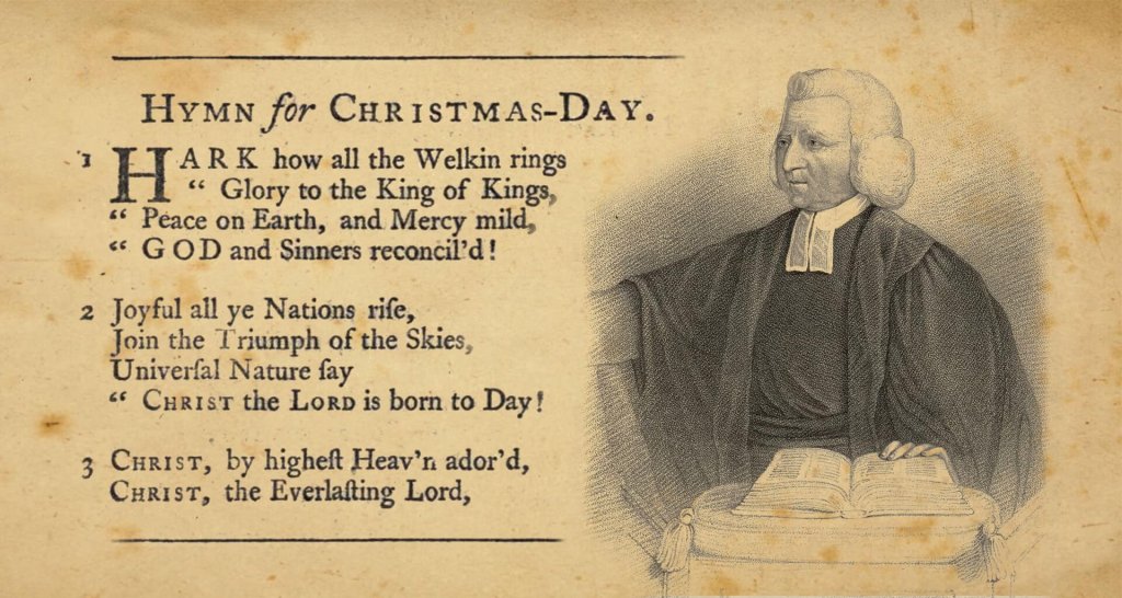 Banner Image via Pixabay. Charles Wesley image from the book of hymns and verse published by Charles and John Wesley. The first verse words and part of those in the second are on the capture. The original ten verses were combined into five, so verses one and two in the capture are now verse one. Charles wrote hymns with up to 19 verses! Public domain.