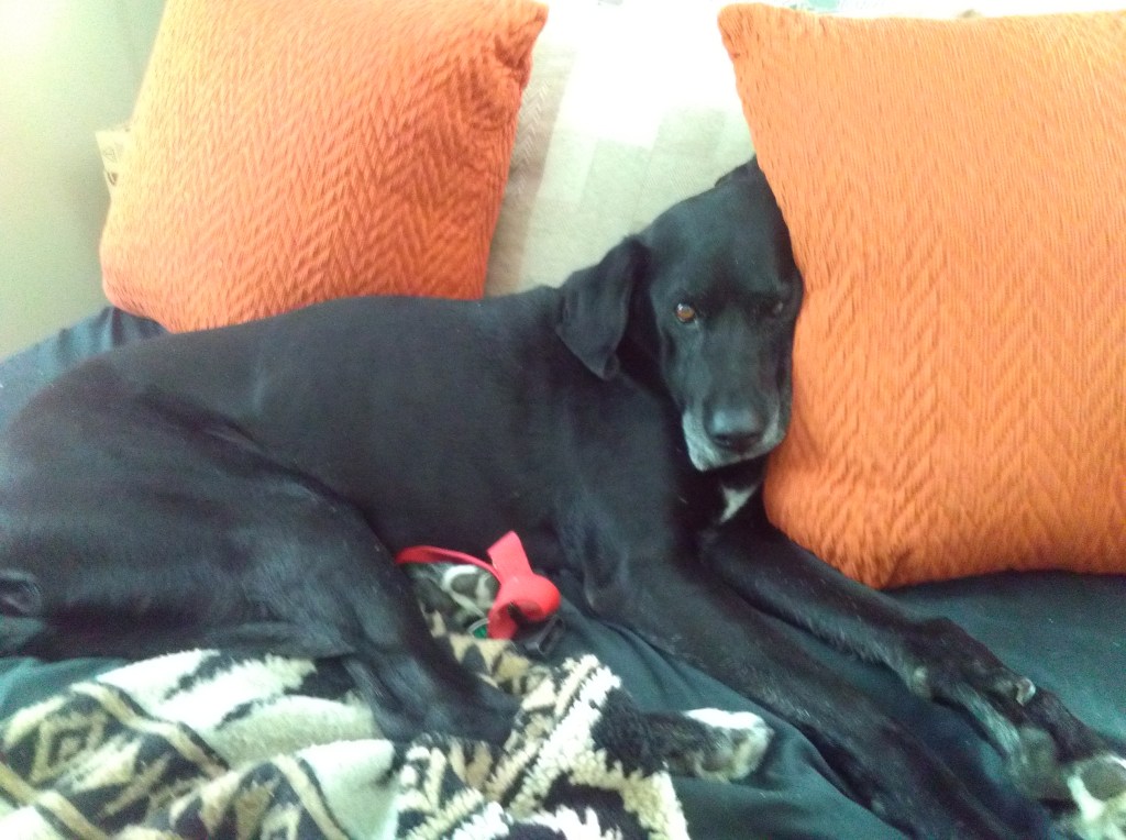 Working from home allows me to spend a lot of time with my dogs.  In my former home in Crookston, MN, my office was in an upstairs bedroom that was part of the old Victorian turret on the front of the house.  On the rounded wall there are three windows that overlook the street.  Jackson had a dog bed on the window seat from which he kept watch on the front yard and the entire block.
